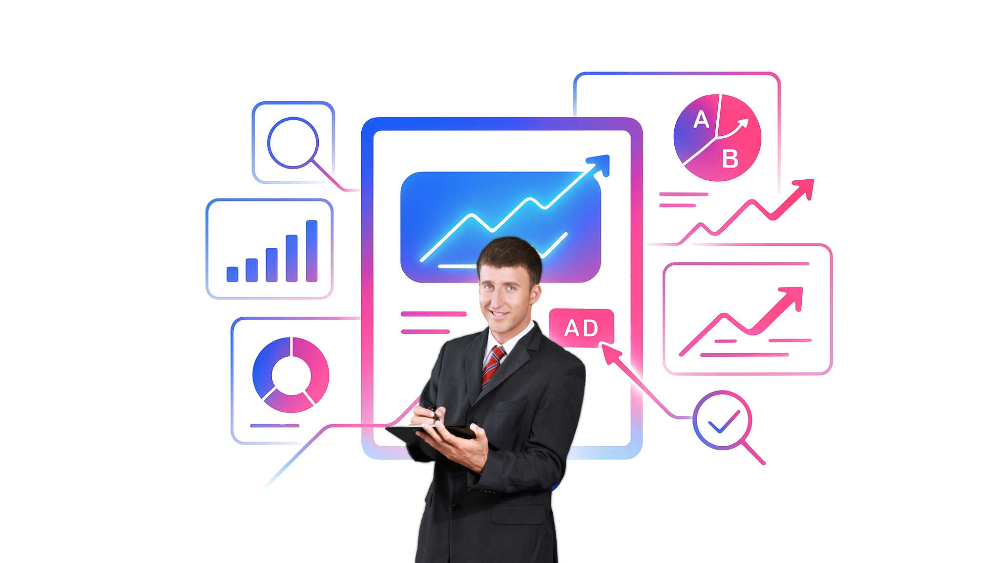 Wir überwachen und optimieren Ihre Kampagnen täglich. Dazu gehören die Anpassung von Geboten, das Testen neuer Anzeigen (A/B-Tests) und das Ausschließen unrentabler Suchbegriffe, um Ihr Budget zu schützen.