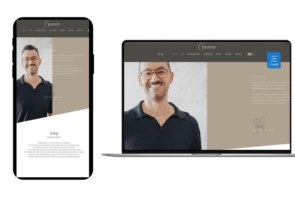 Ein Mobiltelefon und ein Laptop, auf denen eine Steuerberatungs-Website mit einem Text über das Sparen von Steuern angezeigt wird.